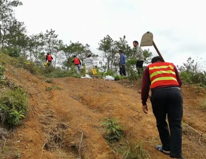 在其他各村的植树点,参与人员配合默契,或挥锹铲土,或扶苗培土,或踏土夯实,繁忙而有序,一派热火朝天的场面,大家在山头林间,种下希望、挥洒春日的汗水。